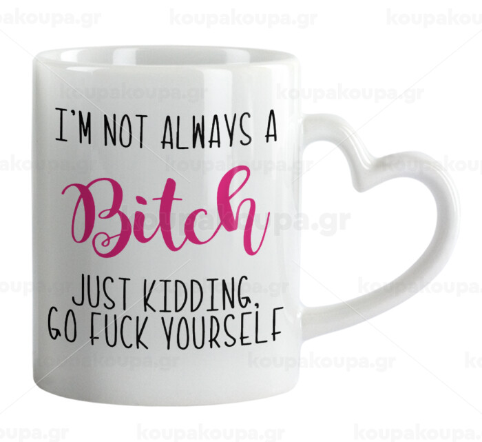I'm not always a bitch, just kidding go f..k yourself , Mug heart handle, ceramic, 330ml