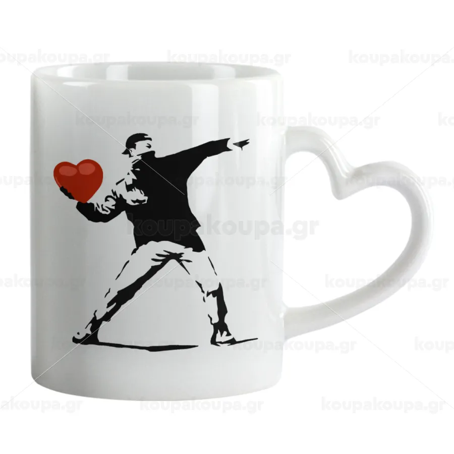 Banksy (The heart thrower), Mug heart handle, ceramic, 330ml