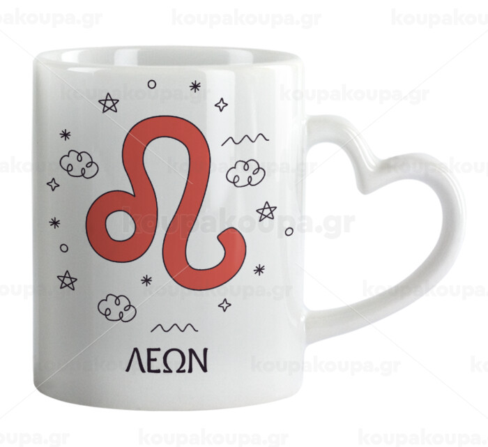 Ζώδια Λέων, Mug heart handle, ceramic, 330ml
