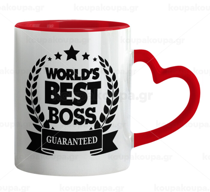 World's best boss stars, Mug heart red handle, ceramic, 330ml