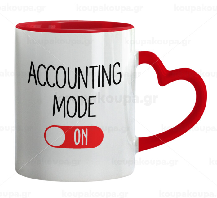 ACCOUNTANT MODE ON, Mug heart red handle, ceramic, 330ml