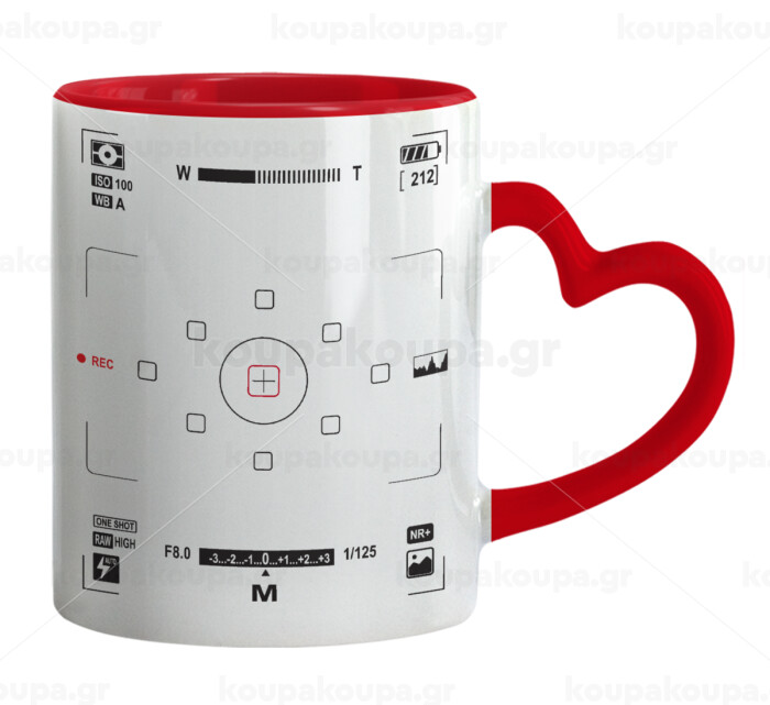 Camera viewfinder, Mug heart red handle, ceramic, 330ml