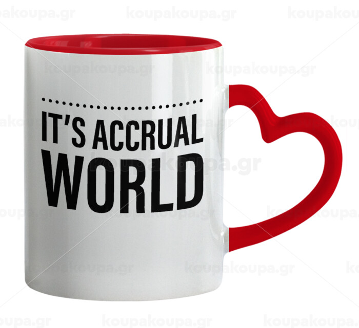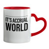 It's an accrual world, Mug heart red handle, ceramic, 330ml