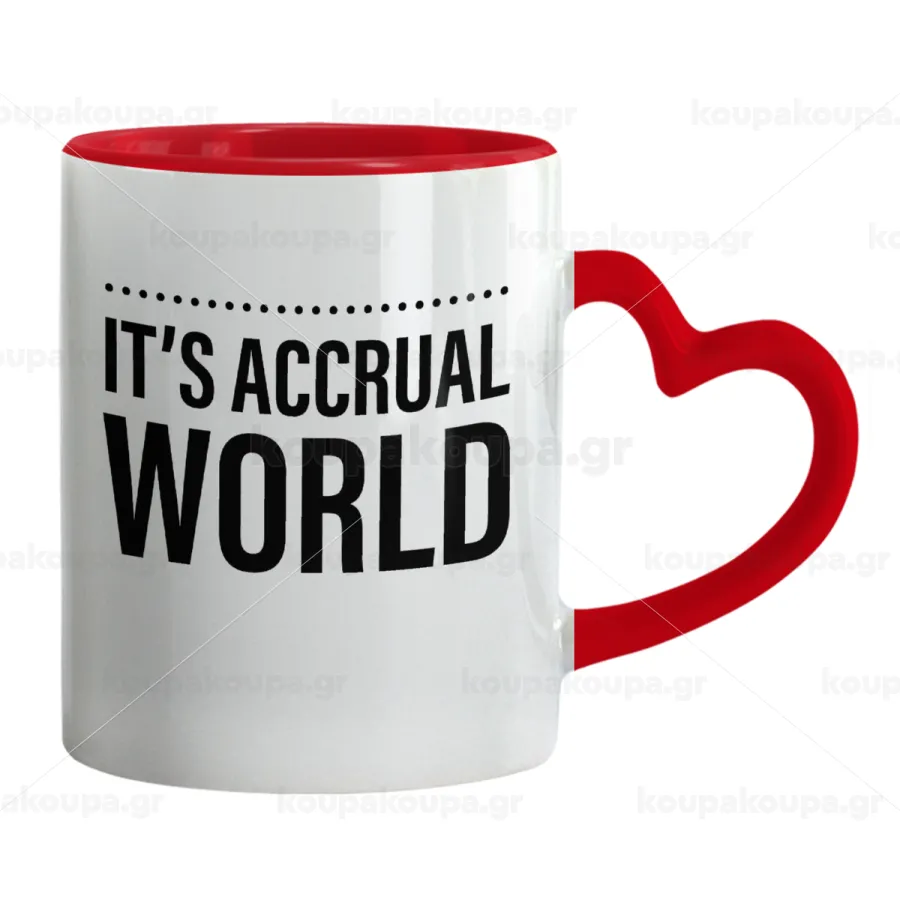 It's an accrual world, Mug heart red handle, ceramic, 330ml