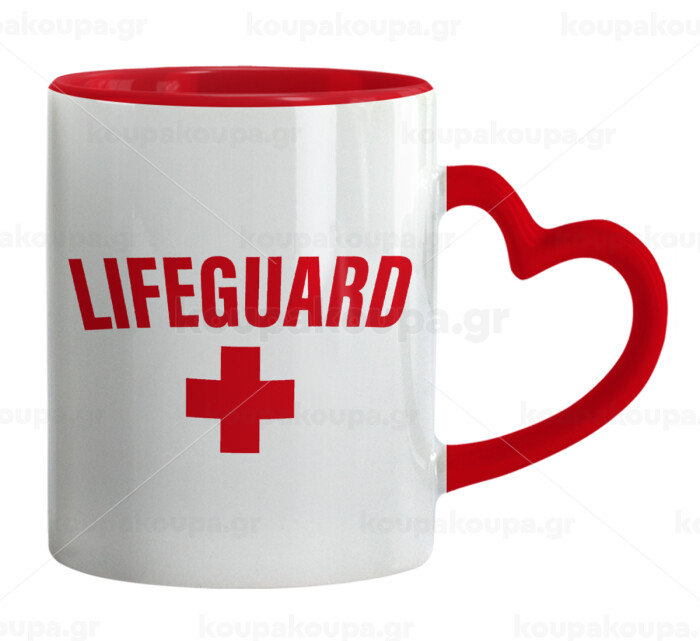 Lifeguard, Mug heart red handle, ceramic, 330ml