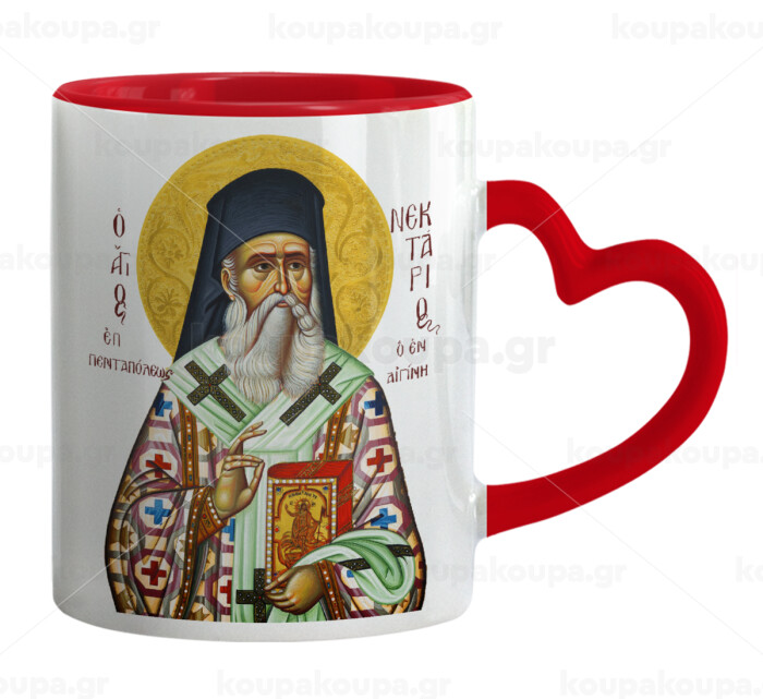 Saint Nektarios, Mug heart red handle, ceramic, 330ml