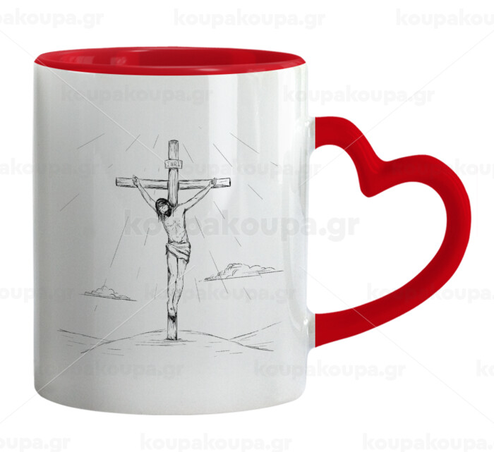 Jesus Christ , Mug heart red handle, ceramic, 330ml