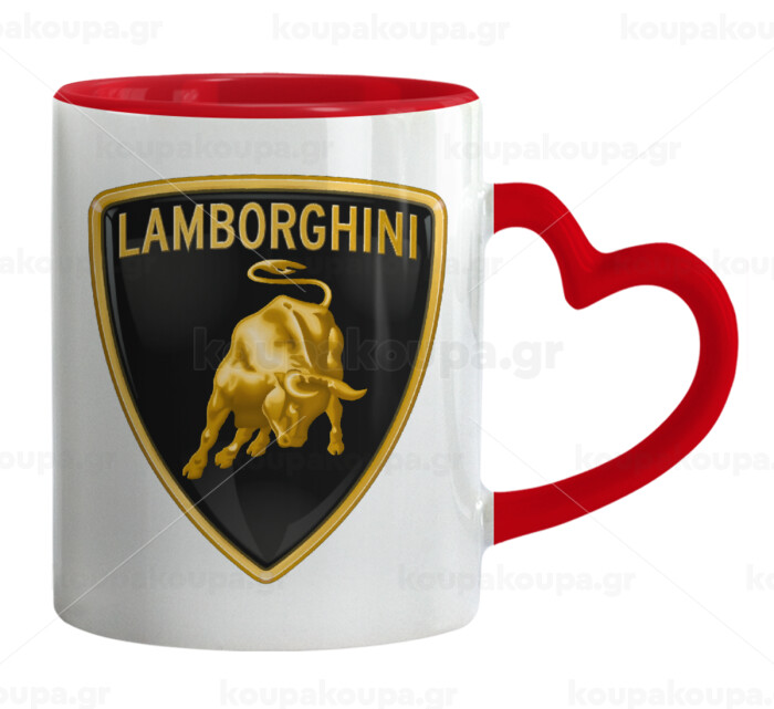 Lamborghini, Mug heart red handle, ceramic, 330ml