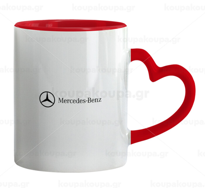 Mercedes small logo, Mug heart red handle, ceramic, 330ml