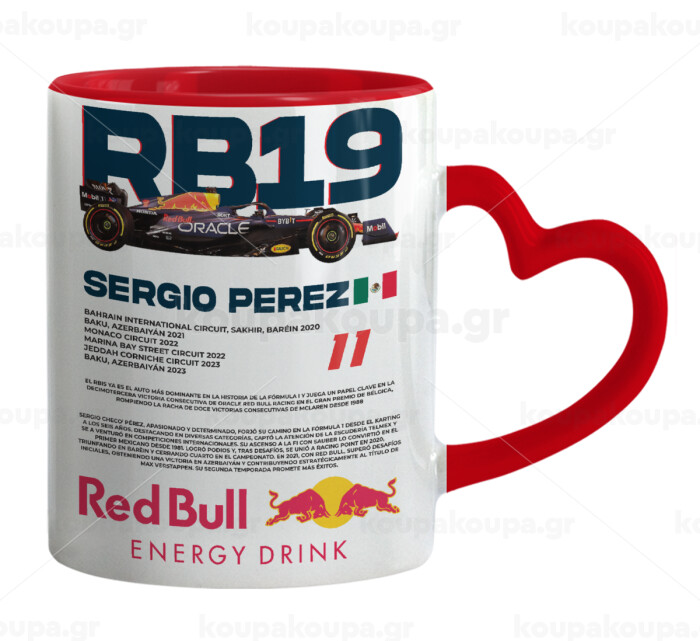 Redbull Sergio Perezi, Mug heart red handle, ceramic, 330ml