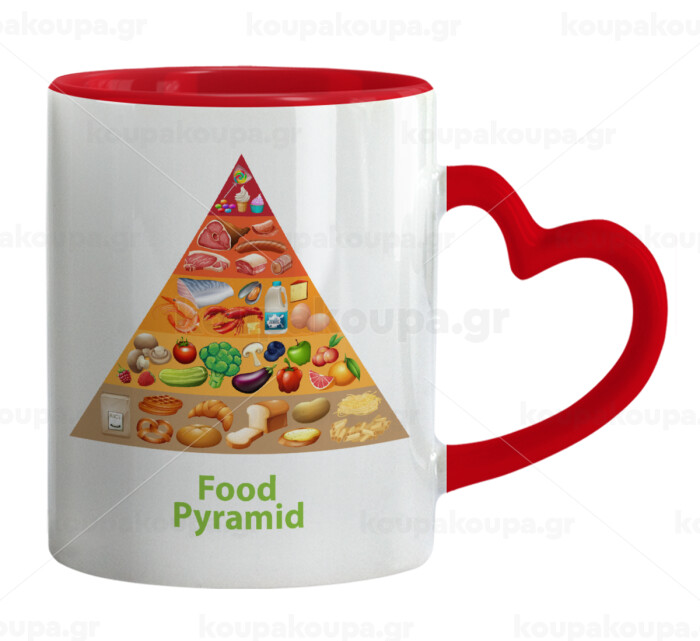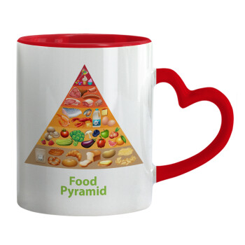 Food pyramid chart, Mug heart red handle, ceramic, 330ml