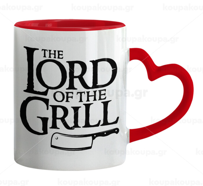 The Lord of the Grill, Mug heart red handle, ceramic, 330ml