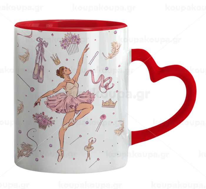 Ballet Dancer, Mug heart red handle, ceramic, 330ml