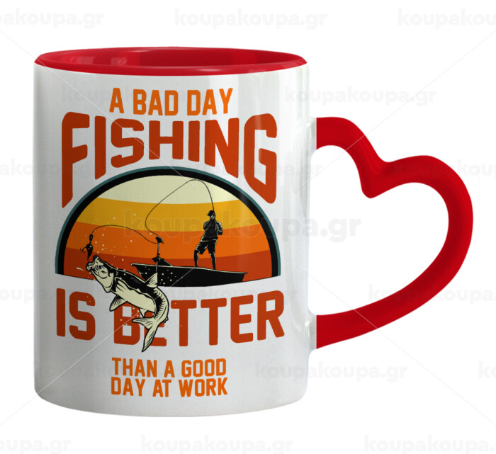A bad day FISHING is better than a good day at work, Mug heart red handle, ceramic, 330ml