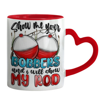 Show me your bobbers and i will show my rod , Mug heart red handle, ceramic, 330ml
