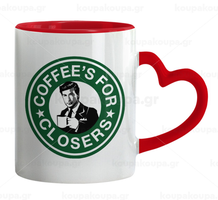 Coffee's for closers, Mug heart red handle, ceramic, 330ml