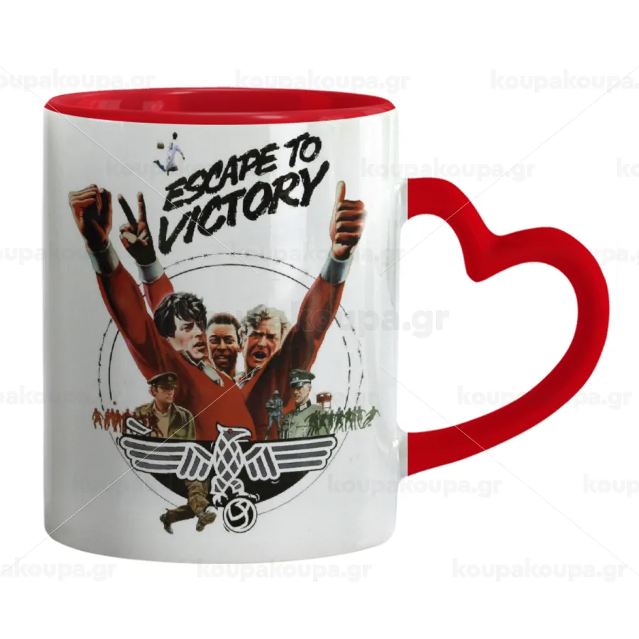 Escape to victory, Mug heart red handle, ceramic, 330ml