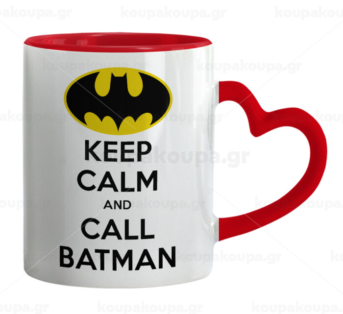 KEEP CALM & Call BATMAN, Mug heart red handle, ceramic, 330ml