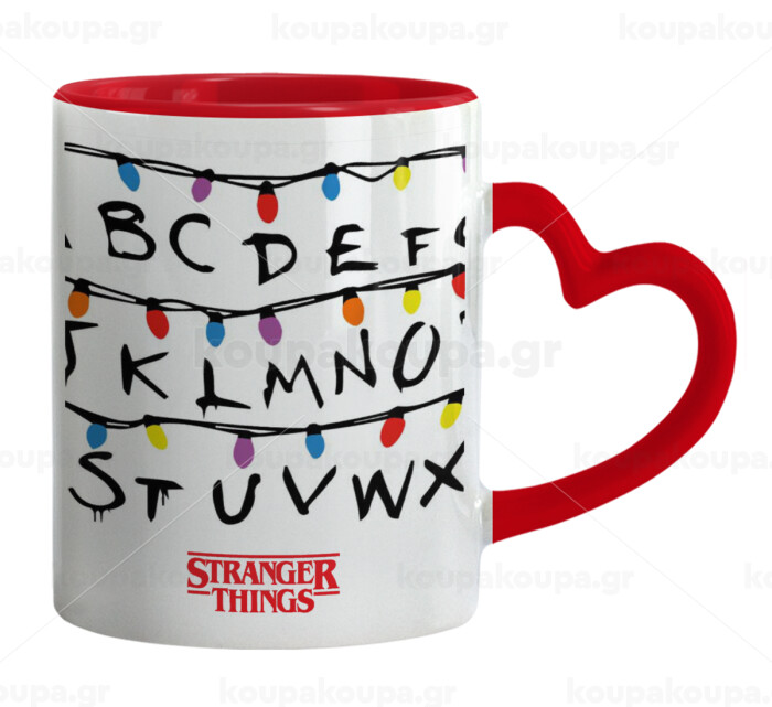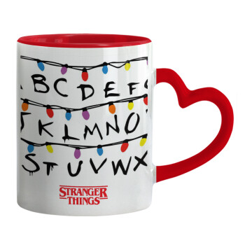 Stranger Things ABC, Mug heart red handle, ceramic, 330ml
