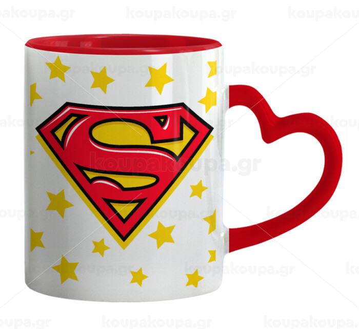 Superman Blue, Mug heart red handle, ceramic, 330ml