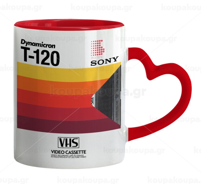 VHS sony dynamicron T-120, Mug heart red handle, ceramic, 330ml