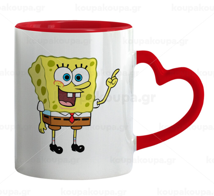 SpongeBob SquarePants character, Mug heart red handle, ceramic, 330ml