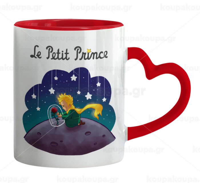 A glossy, high-quality mug with a heart-shaped handle and vibrant colors. Dishwasher safe and suitable for microwave use. Use it for hot and cold drinks.