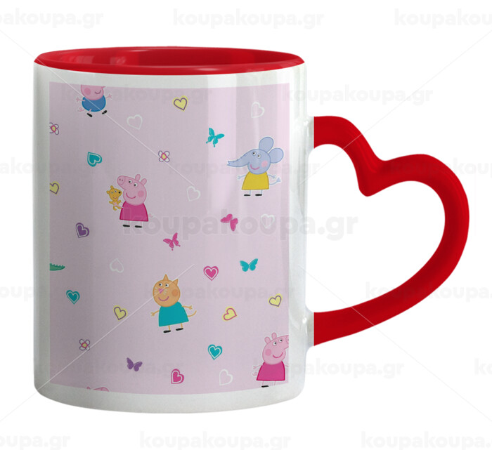 Πέππα το γουρουνάκι και οι φίλοι της, Mug heart red handle, ceramic, 330ml