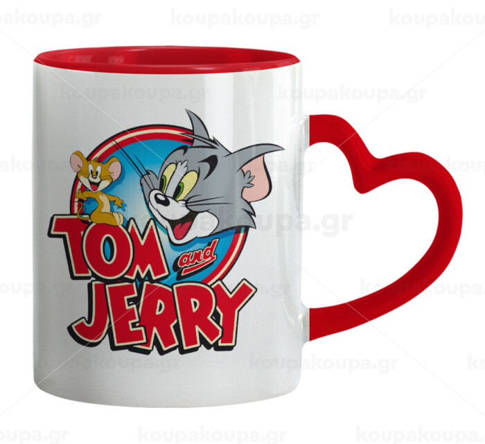 Tom and Jerry, Mug heart red handle, ceramic, 330ml
