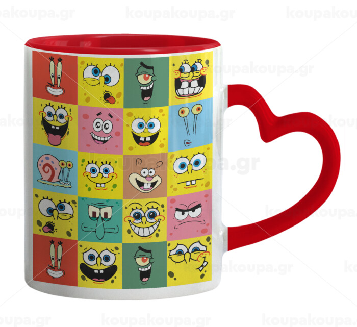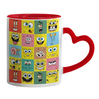 BOB spongebob and friends, Mug heart red handle, ceramic, 330ml