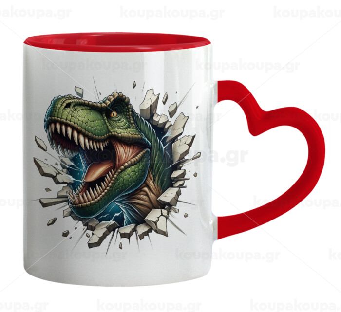 Dinosaur break wall, Mug heart red handle, ceramic, 330ml
