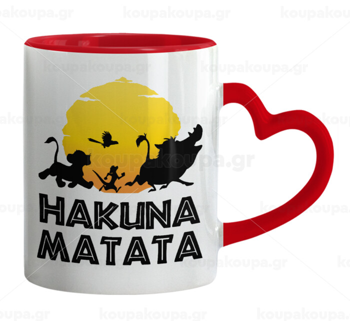 Hakuna Matata, Mug heart red handle, ceramic, 330ml