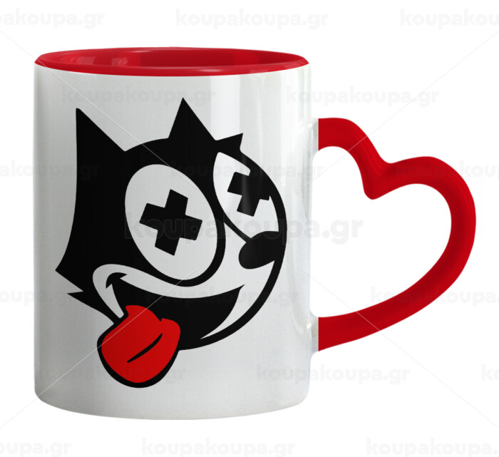 helix the cat, Mug heart red handle, ceramic, 330ml