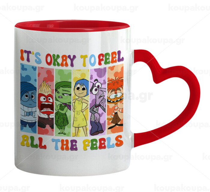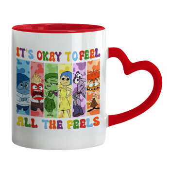 Inside Out It's Okay To Feel All The Feels , Mug heart red handle, ceramic, 330ml