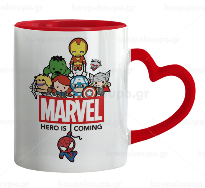 MARVEL, Mug heart red handle, ceramic, 330ml