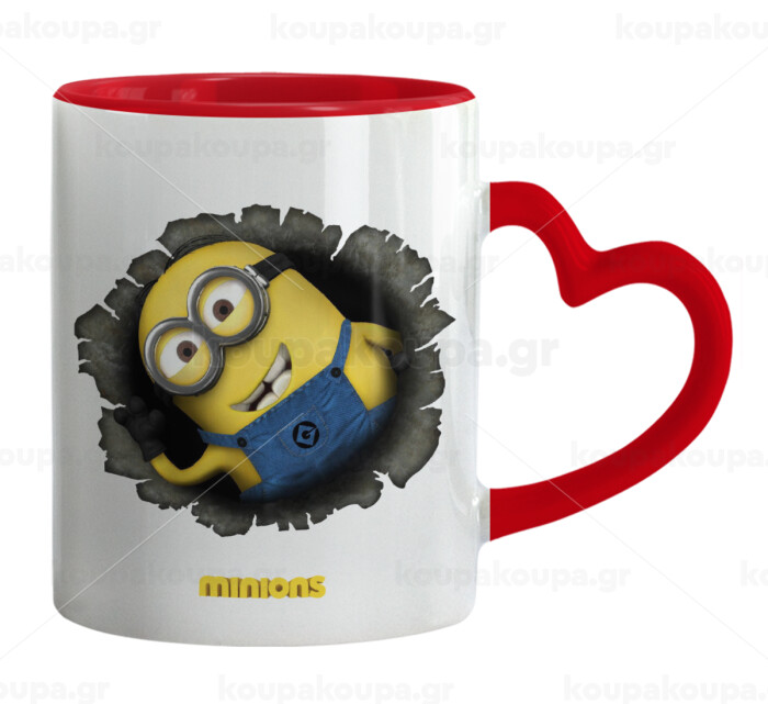 Minions hi, Mug heart red handle, ceramic, 330ml