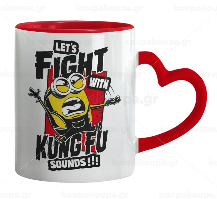 Minions Let's fight with kung fu sounds, Mug heart red handle, ceramic, 330ml
