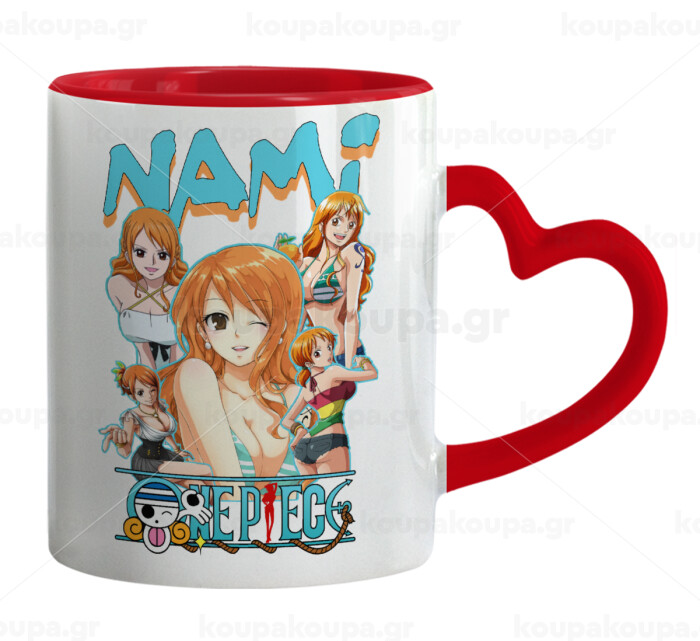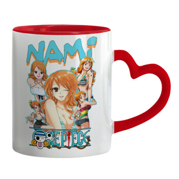 Nami One Piece, Mug heart red handle, ceramic, 330ml