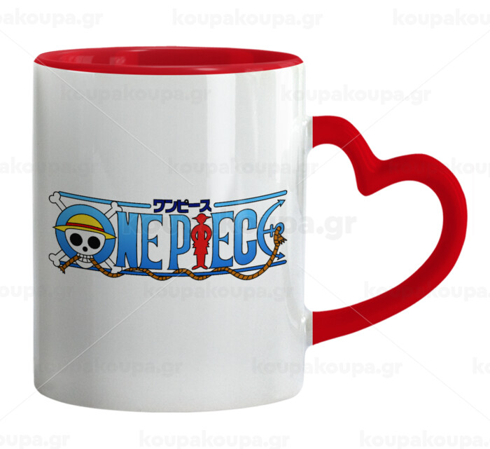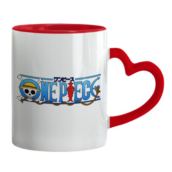Onepiece logo, Mug heart red handle, ceramic, 330ml
