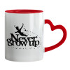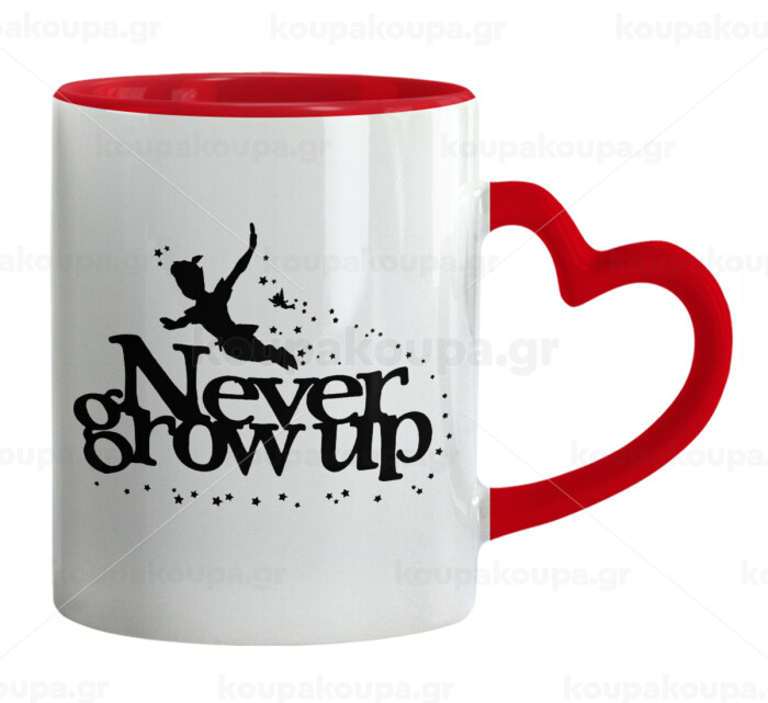 Peter pan, Never Grow UP, Mug heart red handle, ceramic, 330ml