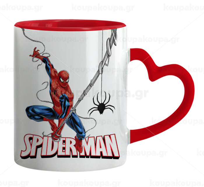 Spiderman fly, Mug heart red handle, ceramic, 330ml