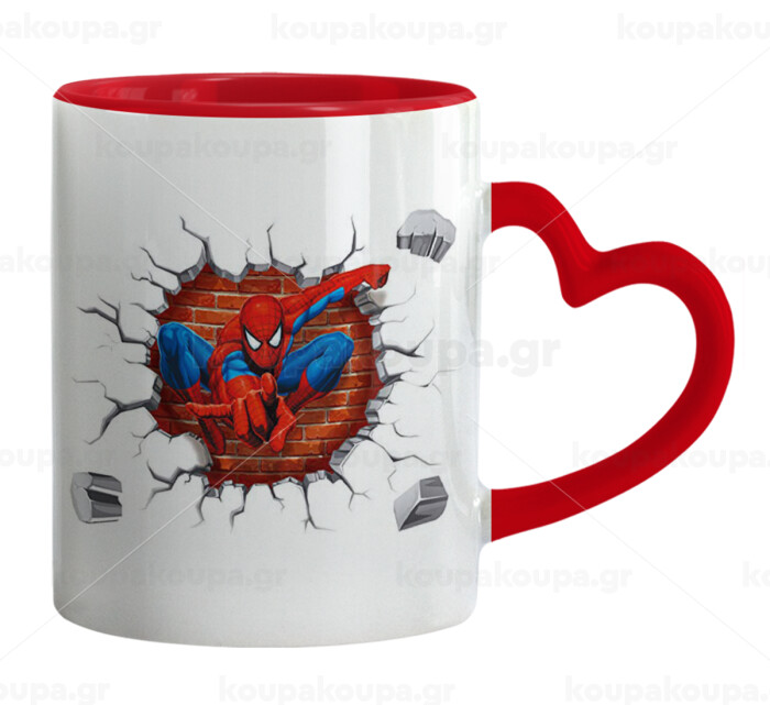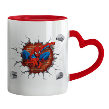 Spiderman wall, Mug heart red handle, ceramic, 330ml