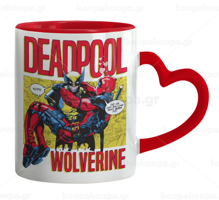 Superhero Deadpool Wolverine, Mug heart red handle, ceramic, 330ml