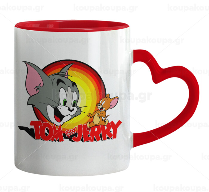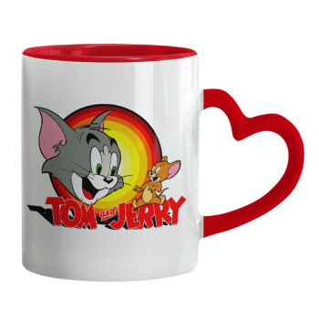 Tom and Jerry, Mug heart red handle, ceramic, 330ml
