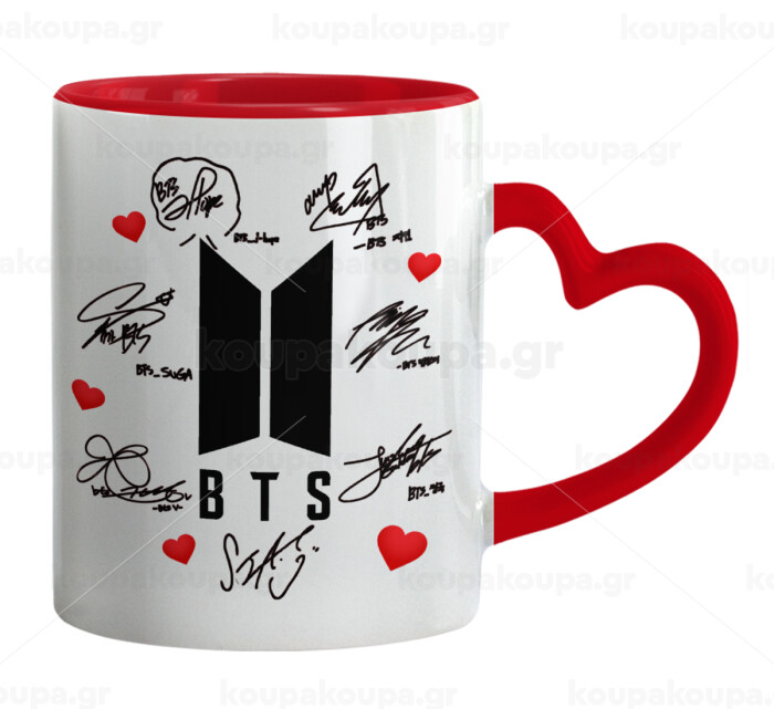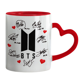 BTS signs, Mug heart red handle, ceramic, 330ml