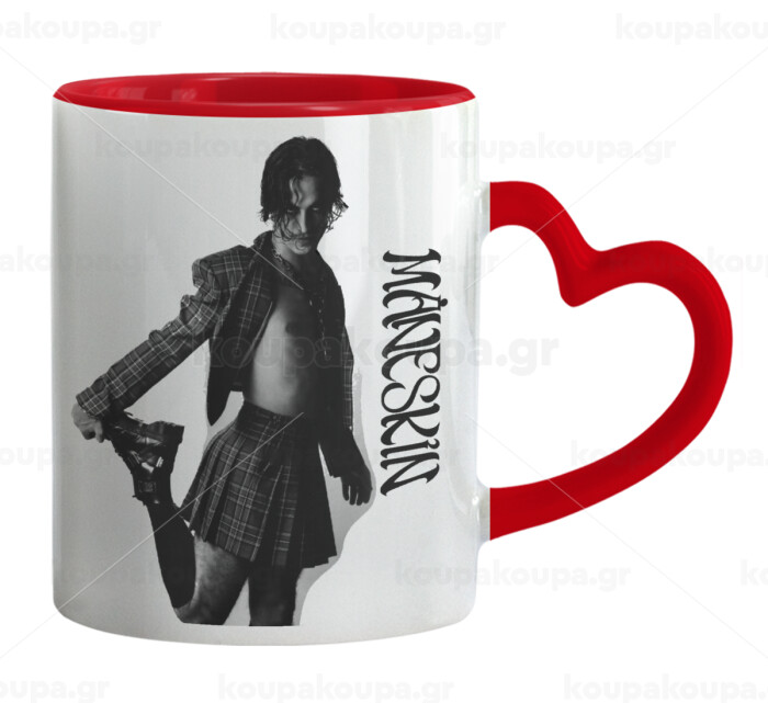 Maneskin Damiano David, Mug heart red handle, ceramic, 330ml