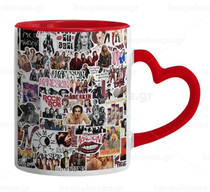 Maneskin stickers, Mug heart red handle, ceramic, 330ml