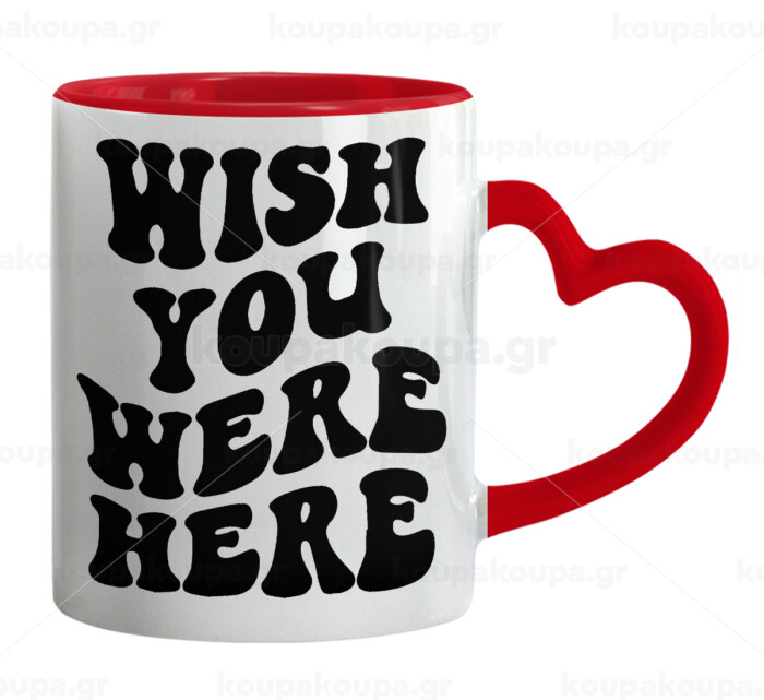 Wish you were here, Mug heart red handle, ceramic, 330ml