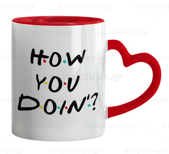 Friends How You Doin'?, Mug heart red handle, ceramic, 330ml