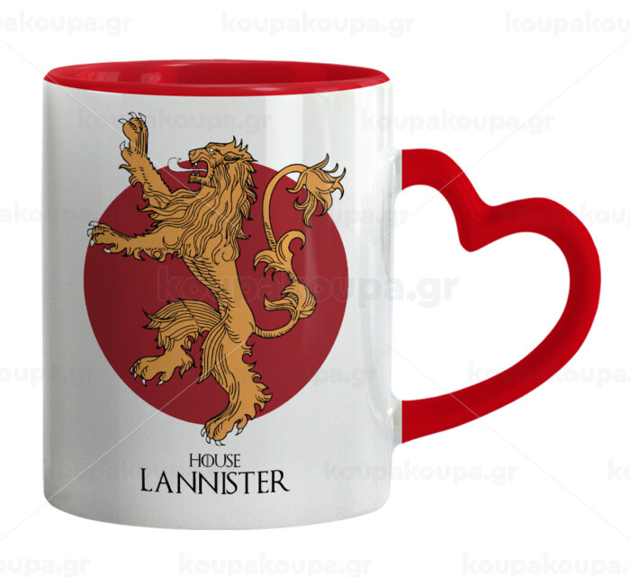 House Lannister GOT, Mug heart red handle, ceramic, 330ml